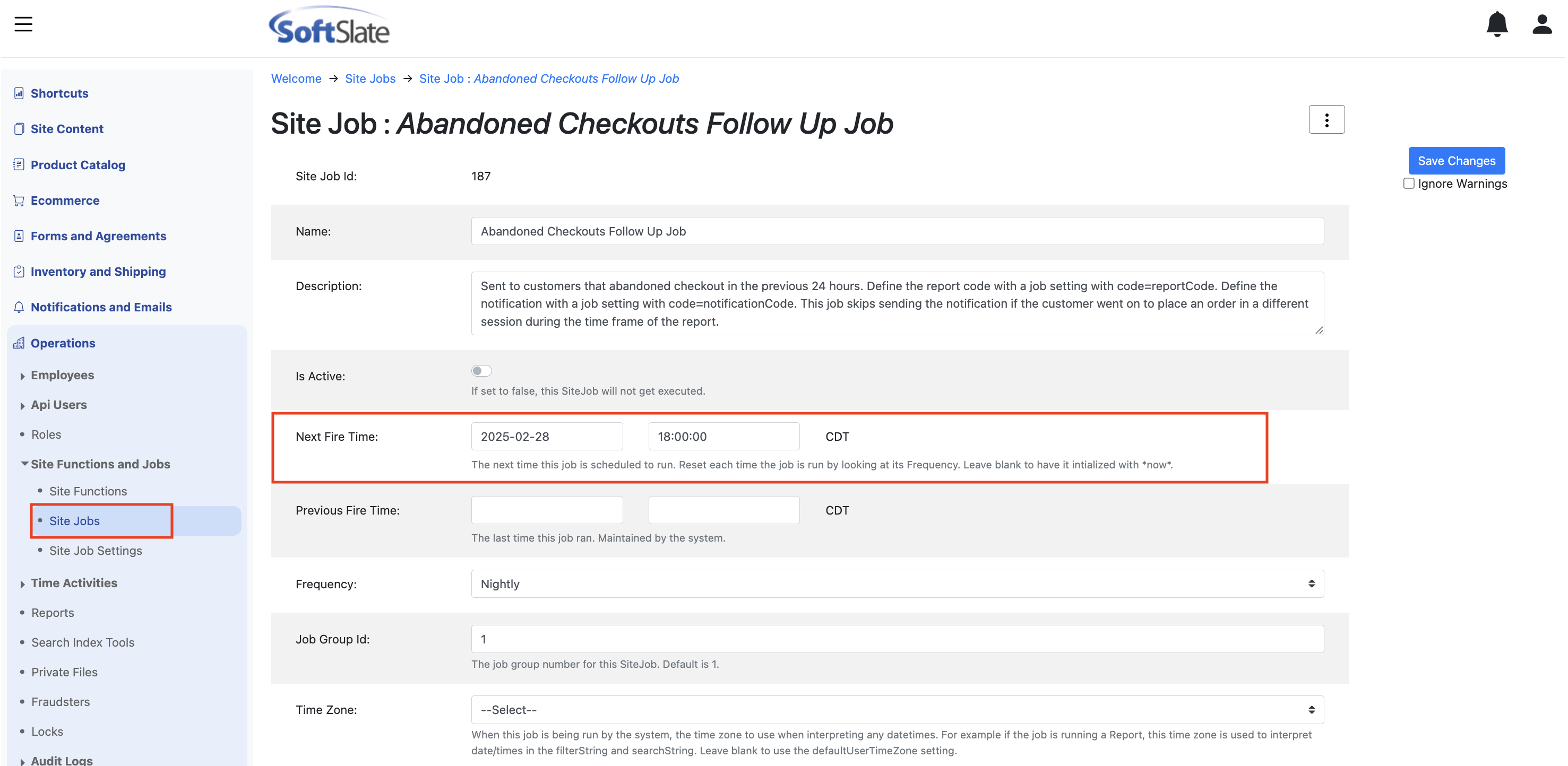 Note: Although you can modify the frequency of the job, we recommend against doing this. The report for the job is designed for it to run Nightly, so you should leave the frequency at nightly.